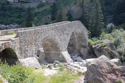 In Wassen angekommen haben wir gut ein Drittel der Höhenmeter für heute gemacht und gönnen uns ein leckeres Mittagessen. Dann gehts weiter, mit wieder befüllten Flaschen den Berg hoch. In Göschenen machen wir nochmal kurz Pause, Obst essen und nen Ovo-Riegel :) und folgen mit geringer Geschwindigkeit der Straße bis bald nach dem Ort die Teufelsbrücke auftaucht. Eigentlich tauchen wir plötzlich auf der Brücke auf.
